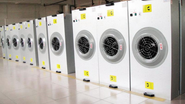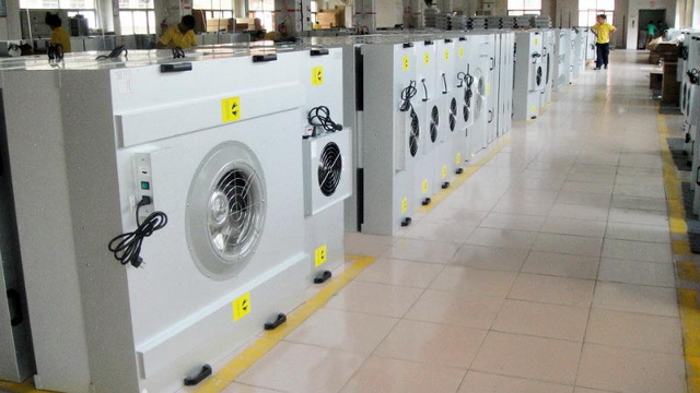 FFU風機濾網機組可模塊化連接使用,使用FFU廣泛應用于潔凈室、潔凈棚、潔凈工作臺、潔凈生產線、組裝式潔凈室和局部百級等應用場合。FFU設有初、高效兩 級過濾網。風機從FFU頂部將空氣吸入并經初、高效過濾器過濾,過濾后的潔凈空氣在整個出風面以0.45M/S±20%的風速勻速送出。適用于在各種環境中獲得高級別的潔凈環境。它為不同尺寸大小,不同潔凈度等級的潔凈室、 微環境提供高質量的潔凈空氣。在新建潔凈室、潔凈廠房式改造翻新中,即可提高潔凈度級別,降低噪音和振動,也可大大降低造價,安裝維護方便,是潔凈環境的理想部件。