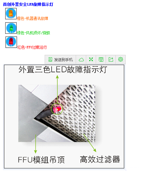 本公司生產的FFU智能集控系統具有調節FFU風速,實際電流LED顯示,故障報警,過載保護功能,并可設置本地控制(即單臺控制)及遠程集控功能(RS485)。靈活多變的控制方式,使FFU的控制更加隨心所欲。