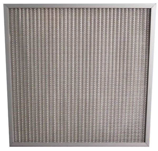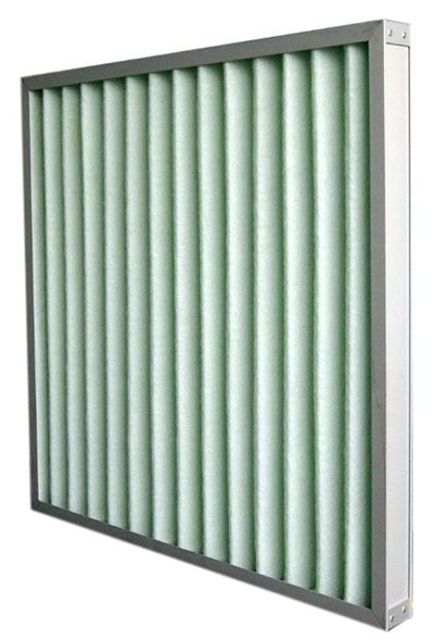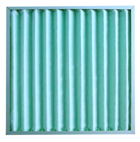 過濾材料是以折疊形式裝入高強度摸且硬紙板內,迎風面積增大,流入的空氣中的塵埃粒子被過濾材料有效阻擋在摺與摺之間。潔凈空氣從另一面均勻流出。因此氣流通過過濾網是平穩和均勻的。視過濾濾料不同。它所攔截粒子的粒經從0.5um到5um而不同。過濾效率也不同。