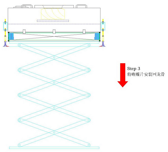 FFU安裝指導指南步驟4:使用升降機慢慢將FFU整體放至蝴蝶片上,如下圖所示: